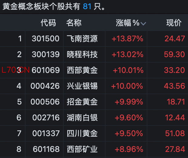 黄金概念股走强