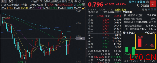 当前全球地缘局势紧张,市场波动加大,银行板块防御属性突出,受到资金关注。上交所数据显示,银行ETF(512800)近3日连续获资金净流入1.31亿元。