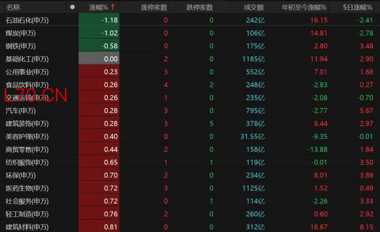 31个申万一级行业中,石油石化、煤炭、钢铁收跌,食品饮料、美容护理、商贸零售、纺织服饰等微涨。