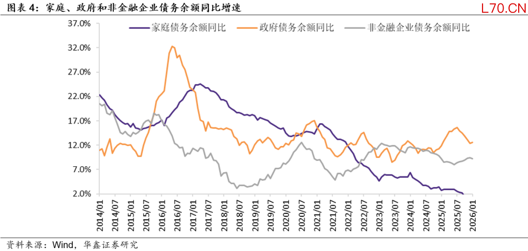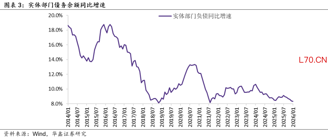 (2)稳定宏观杠杆率政策目标不变。2026年政府工作报告明确指出:“使社会融资规模、货币供应量增长同经济增长、价格总水平预期目标相匹配。“这意味着2016年以来稳定宏观杠杆率的政策目标没有发生变化。
