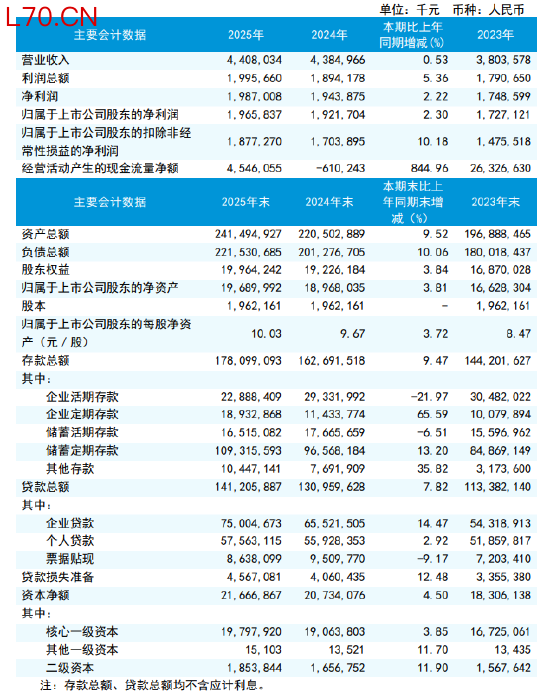 瑞丰银行:2025年实现归母净利润19.66亿元,较上年度增长2.30%
